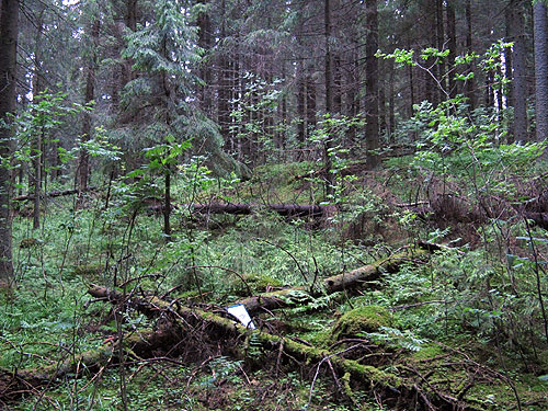 on harvennettua vanhaa kuusivaltaista metsää. Rinteessä jyrkänteellä kasvaa