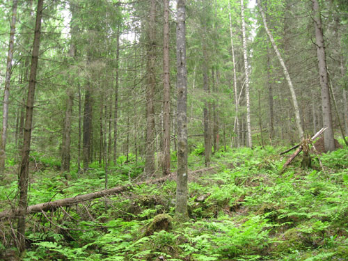 mutta uran itä/luodepuolinen metsä on varttuneempaa ja lahopuustoista kuusivaltaista