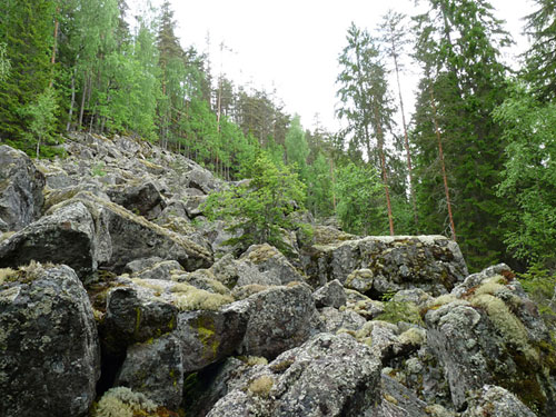 rinteellä lahoaa runsaasti (10-20 m3/ha) eri-ikäistä kuusi-, mänty-, koivu-